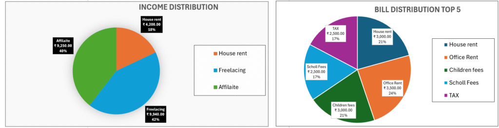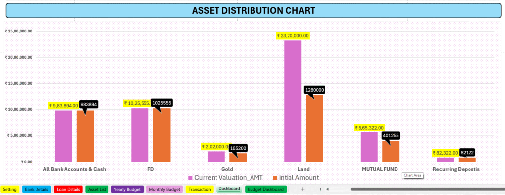 Income & Expense Tracker, Monthly & Yearly Summary Charts, Budget vs Actual Comparison, Category-wise Spending Analysis, Savings & Investment Tracker, Net Worth Overview, Smart Insights (Top Expenses, Trends), Interactive Filters & Slicers, One-click Refresh System.